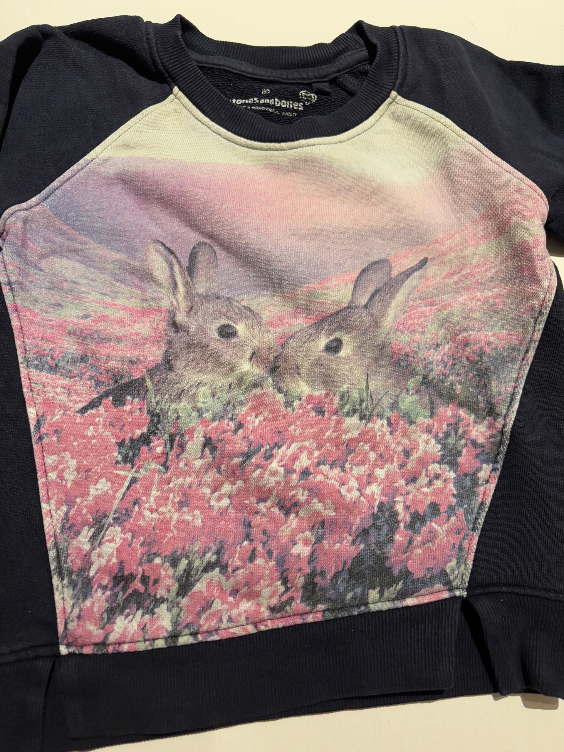 Marineblauwe sweater met konijntjes