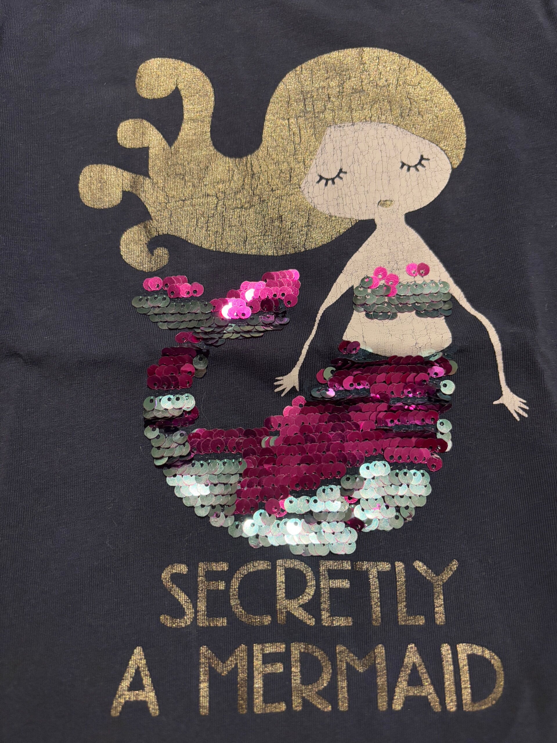 Marineblauwe t-shirt "Secretly a mermaid"