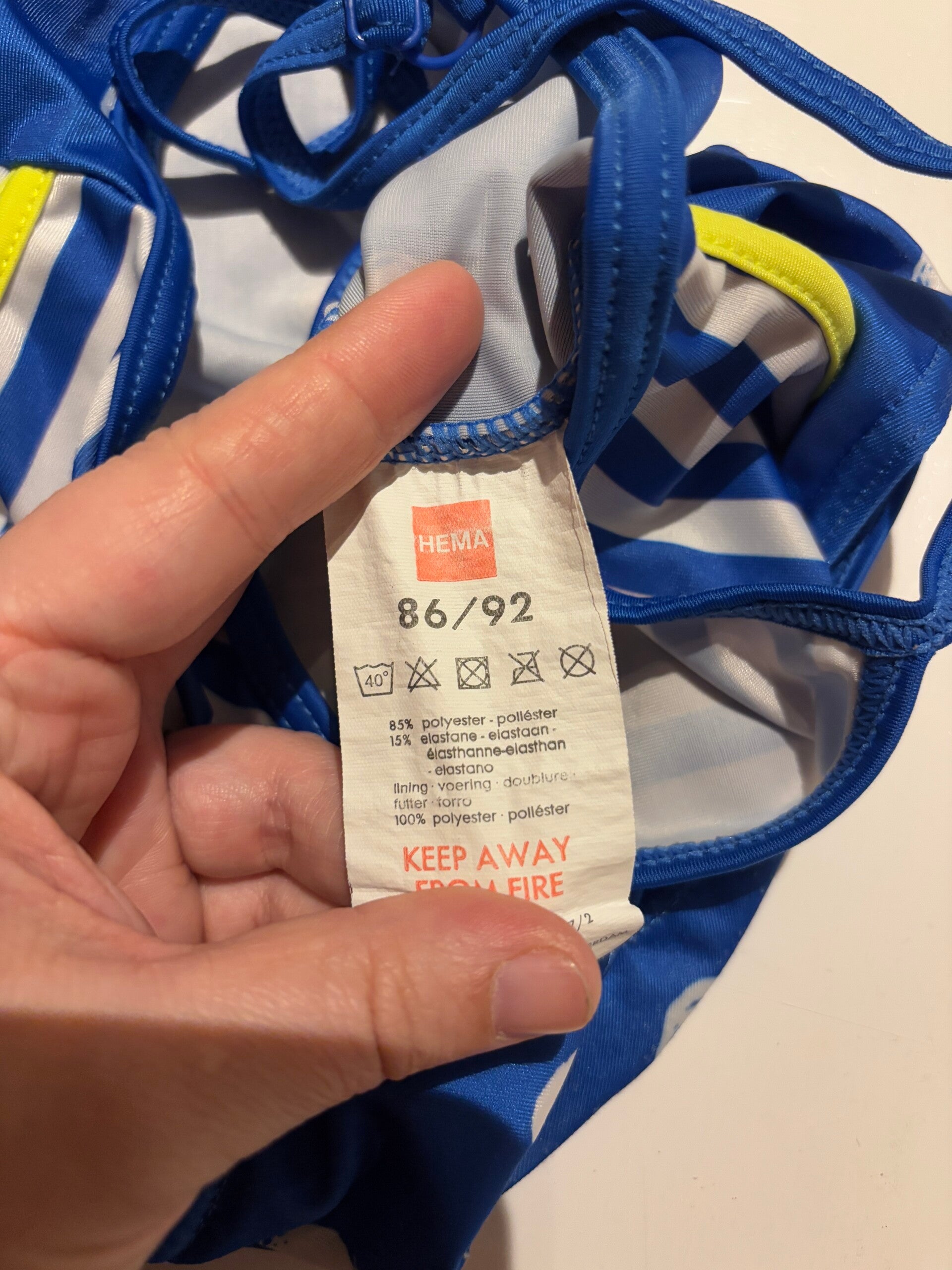 Blauw badpak met witte bollen en strepen