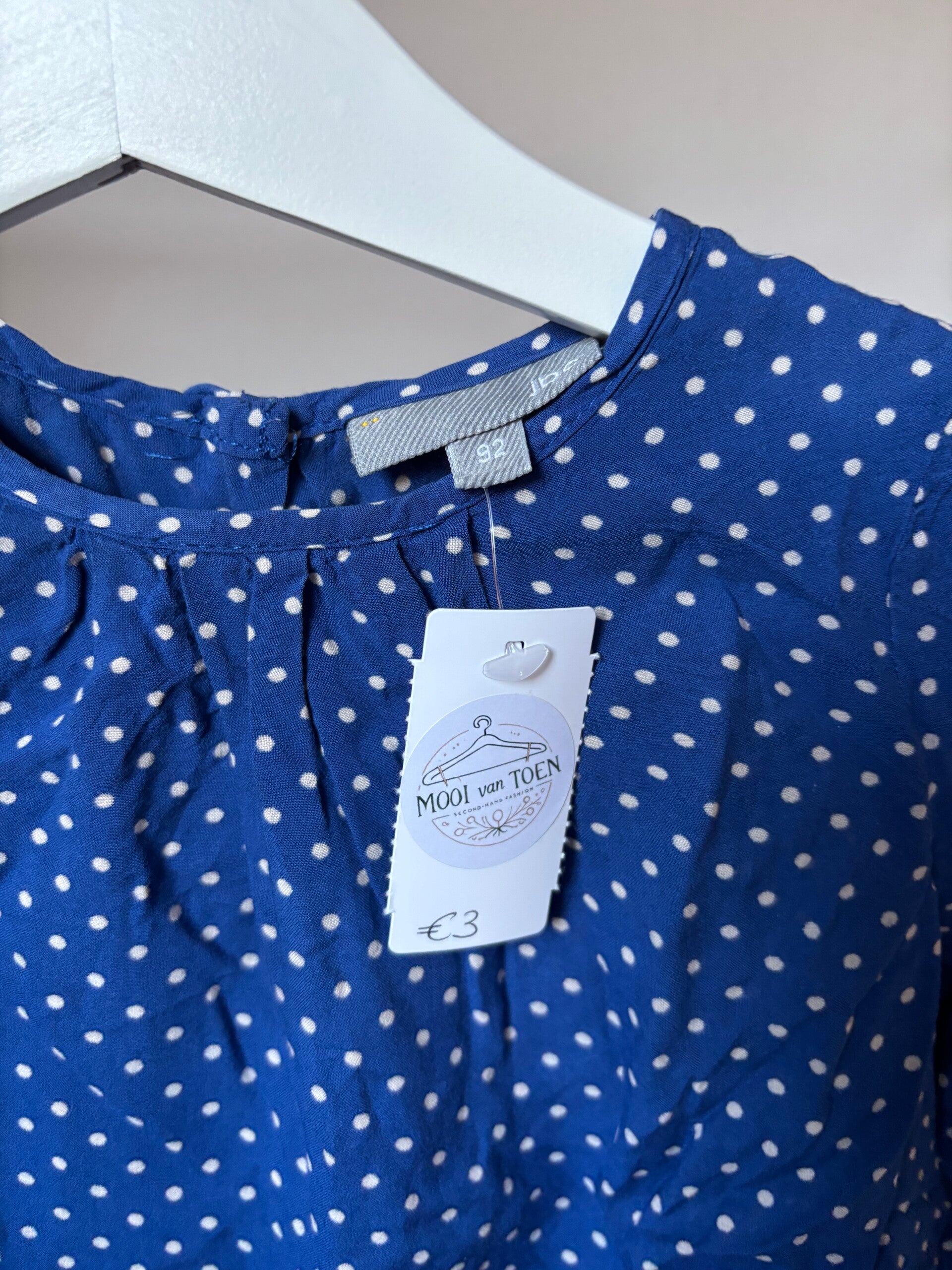Blauwe blouse met witte bolletjes