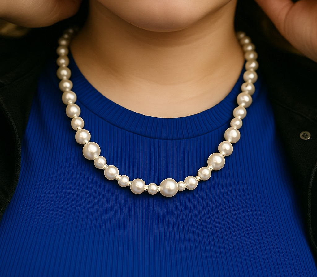 De Ochtendglans Ketting vangt de zachtheid van de vroege ochtendzon in elke parel. Met een elegant spel van groottes straalt ze klasse en rust uit — een tijdloze toevoeging aan elke outfit, die zelfs uit het water haar charme behoudt.